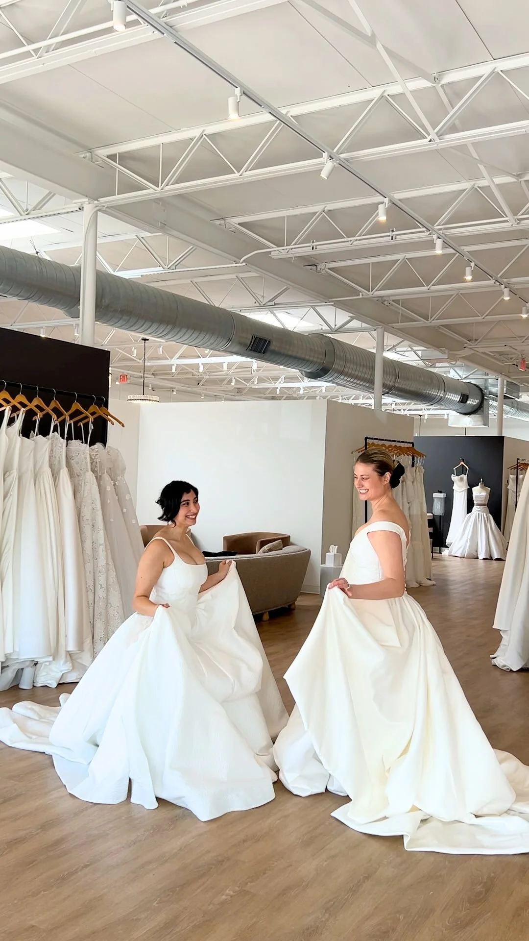 Our collection includes wedding dresses across a variety of styles, fits, and sizes, offering brides flexibility and choice as they shop. While our in-store samples span beyond this range, the majority are available in sizes 8–12. To preview gowns offered in sizes 16–24, we invite you to explore our size-inclusive inventory boards on Pinterest. Our stylists are skilled in helping brides visualize the final fit through precise clipping and tailoring techniques, creating a thoughtful and supportive appointment experience.