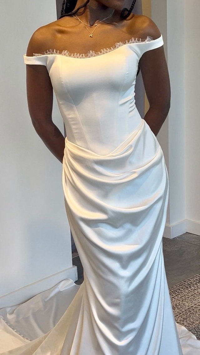 Our wedding dresses and bridal mini dresses are available in a broad range of styles, fits, and sizes to support brides with diverse visions and needs. While our sample collection includes gowns outside this range, most in-store styles are available in sizes 8–12. Brides seeking gowns in sizes 16–24 can explore our size-inclusive inventory boards on Pinterest. Our stylists are trained to guide you through fit and structure using clipping, pinning, and paneling techniques, as we continue to thoughtfully expand our size-inclusive selection.