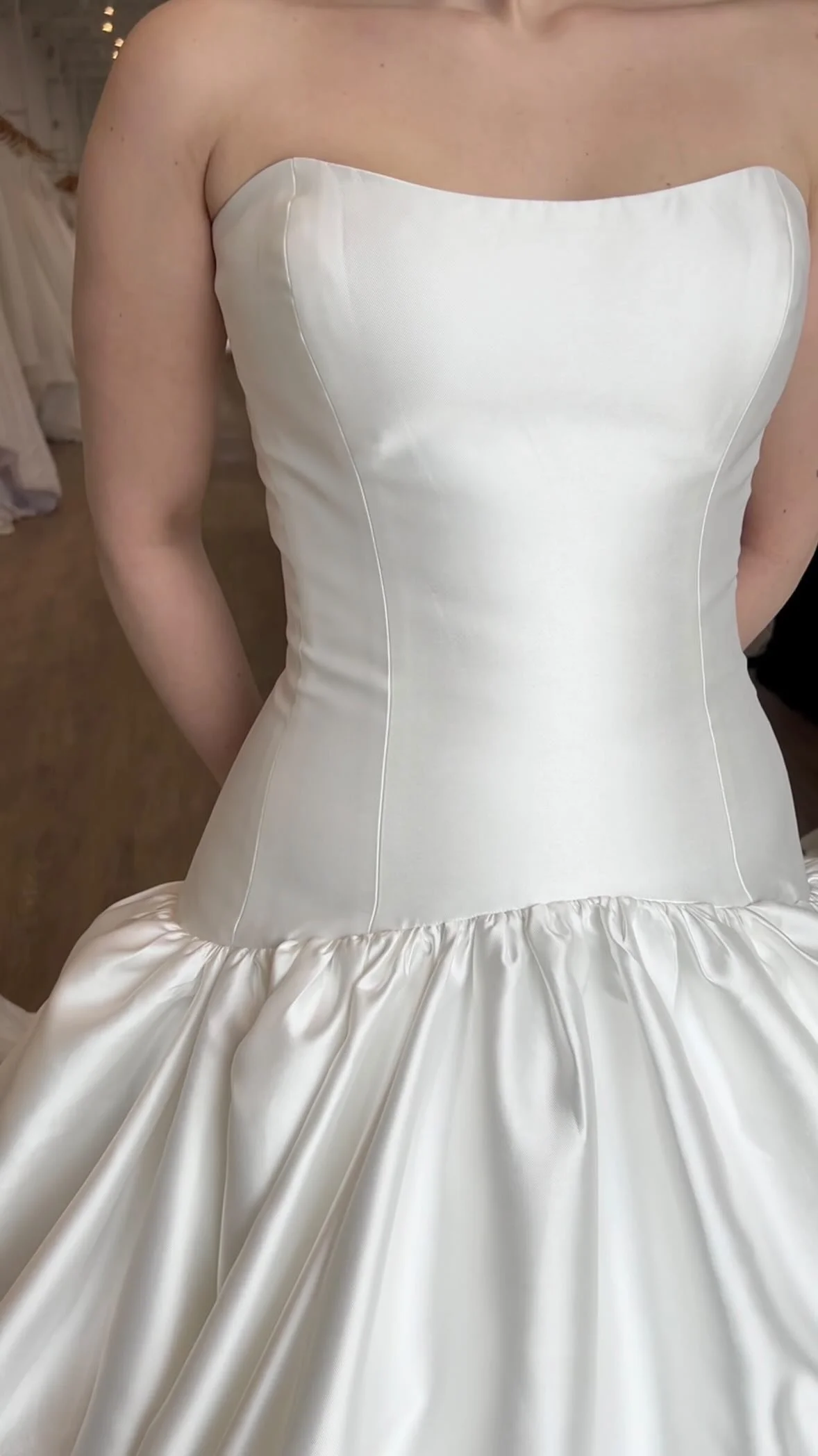 Our wedding dresses are available in a broad range of styles, fits, and sizes to support brides with diverse visions and needs. While our sample collection includes gowns outside this range, most in-store styles are available in sizes 8–12. Brides seeking gowns in sizes 16–24 can explore our size-inclusive inventory boards on Pinterest. Our stylists are trained to guide you through fit and structure using clipping, pinning, and paneling techniques, as we continue to thoughtfully expand our size-inclusive selection.