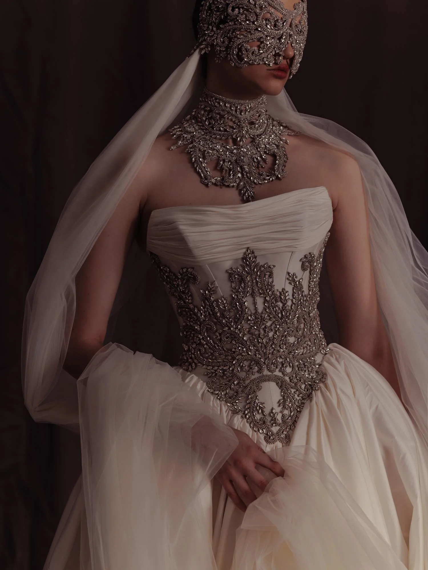 Founded in Tel Aviv, Kim Kassas is defined by a modern couture sensibility that blends strength, romance, and precision. Each gown is thoughtfully designed with structured foundations, sculpted lines, and intricate embellishments that elevate bridalwear into the realm of high fashion.